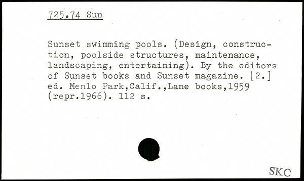 Sunset swimming pools. (Design, construction, poolside structures, maintenance, landscaping, entertaining). By the editors of Sunset books and Sunset magazine. [2.] ed.