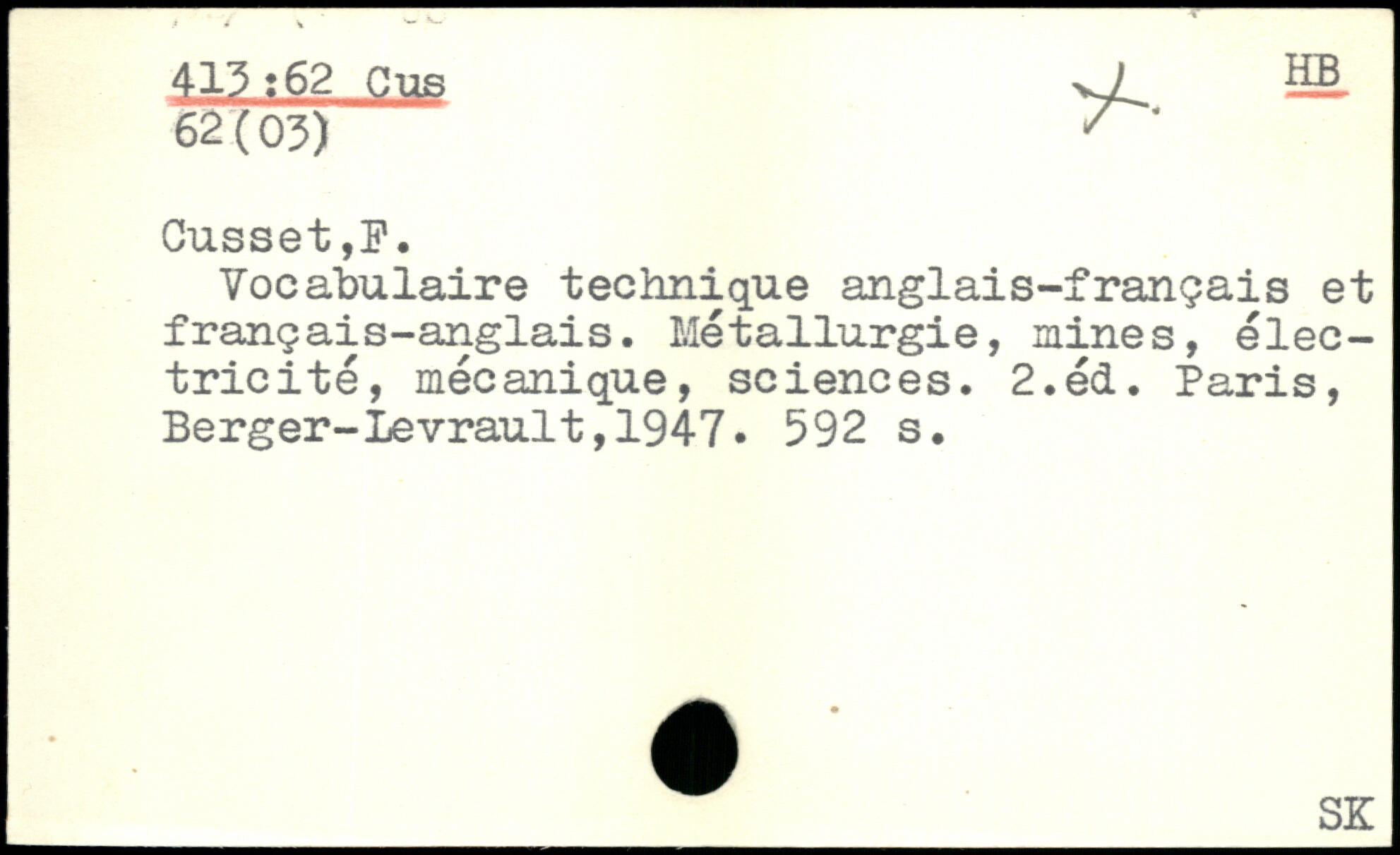 Vocabulaire technique anglais-français et français-anglais. Métallurgie, mines, électricité, mécanique, sciences. 2.éd.