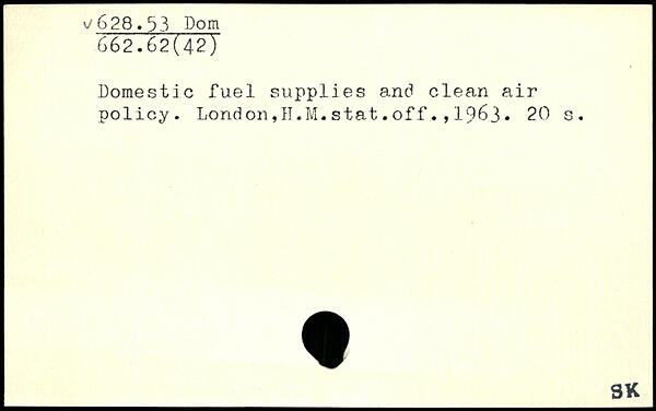 Domestic fuel supplies and clean air policy. London, II.M. st-at. of f. , 1963.