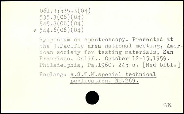 Symposium on spectroscopy. Presented at the 3,Pacific area national meeting, American society for testing materials, San Francisco, Calif., October 12-15}1959. Philadelphia, Pa.19^0.