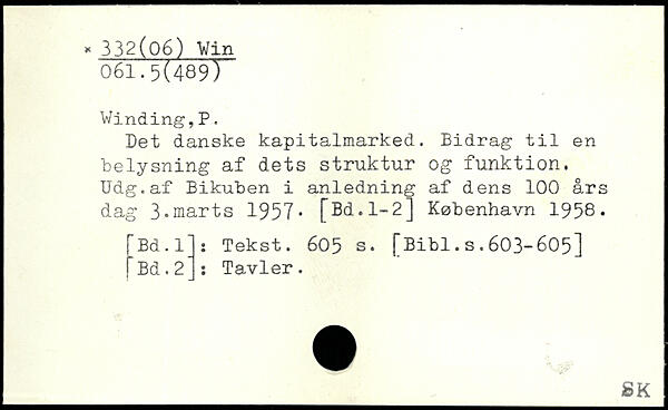 Det danske kapitalmarked. Bidrag til en belysning af dets struktur og funktion. Udg.af Bikuben i anledning af dens 100 års dag 3,marts 1957. [