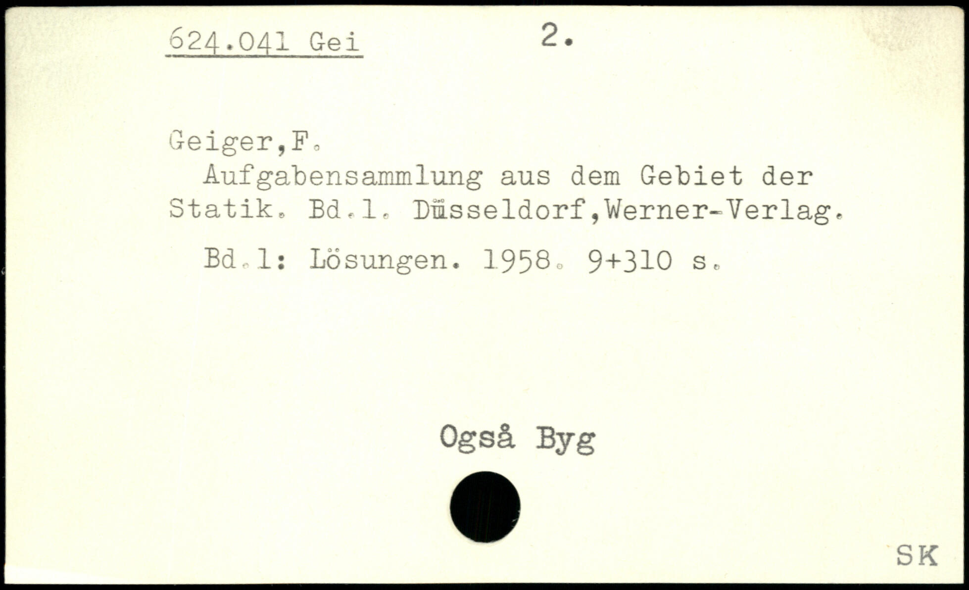 Aufgabensammlung aus dem Gebiet der Statik. Bd.l. Düsseldorf,Werner-Verlag. Bd.l: Lösungen. 1958o