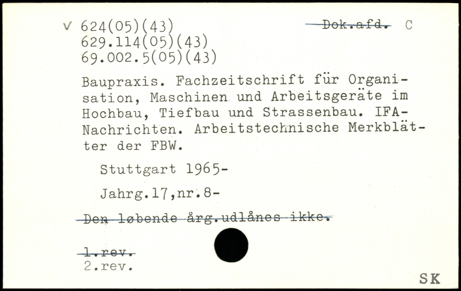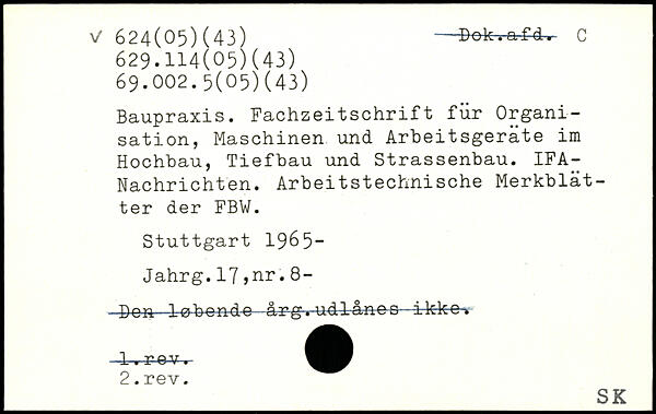 Baupraxis. Fachzeitschrift für Organisation, Maschinen und Arbeitsgeräte im Hochbau, Tiefbau und Strassenbau. IFA-Nachrichten. Arbeitstechnische Merkblätter der FBW.