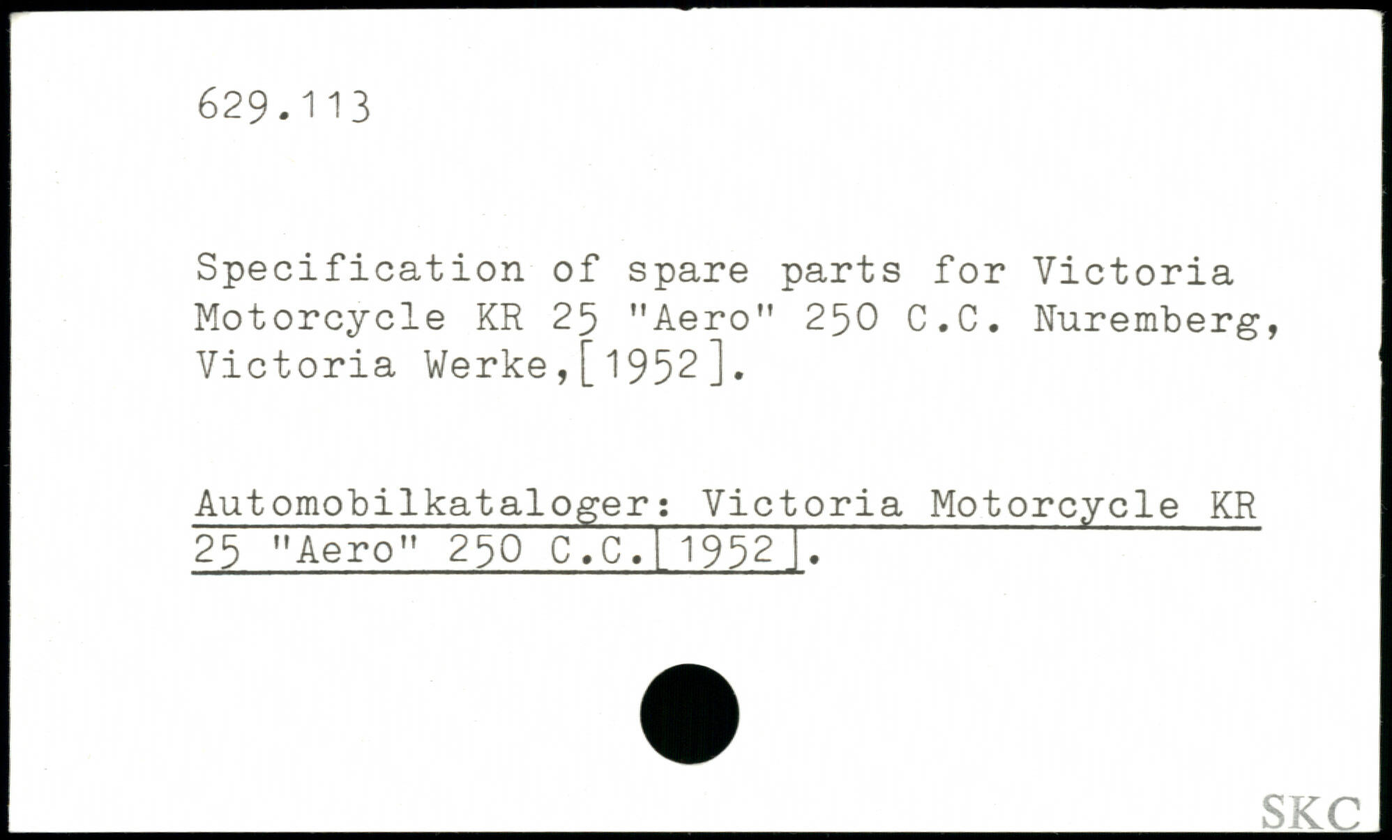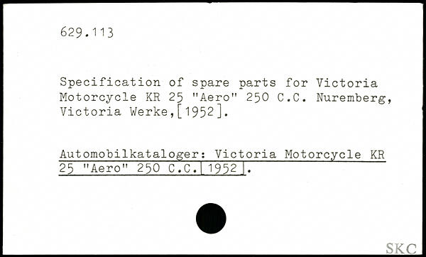 Specification of spare parts for Victoria Motorcycle KR 25 "Aero" 250 C.C.