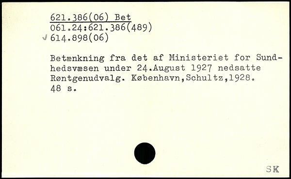 Betænkning fra det af Ministeriet for Sundhedsvæsen under 24.August 19^7 nedsatte Røntgenudvalg.