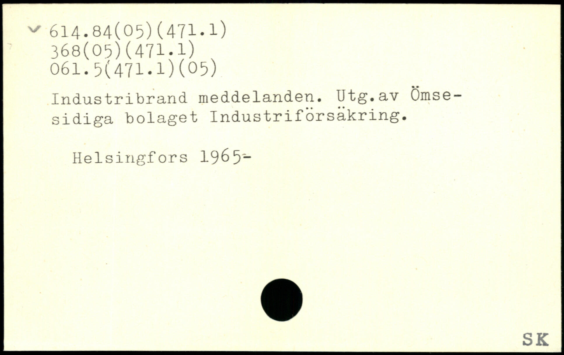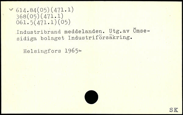 Industribrand meddelanden. Utg.av ömsesidiga bolaget Industriförsäkring.