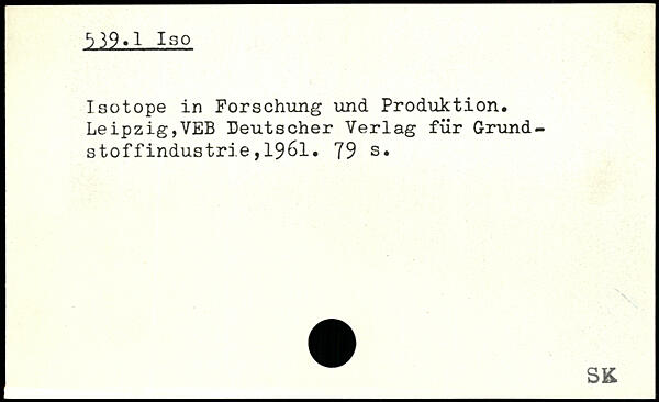 Isotope in Forschung und Produktion. Leipzig,VEB Deutscher Verlag für Grundstoffindustrie,1961.