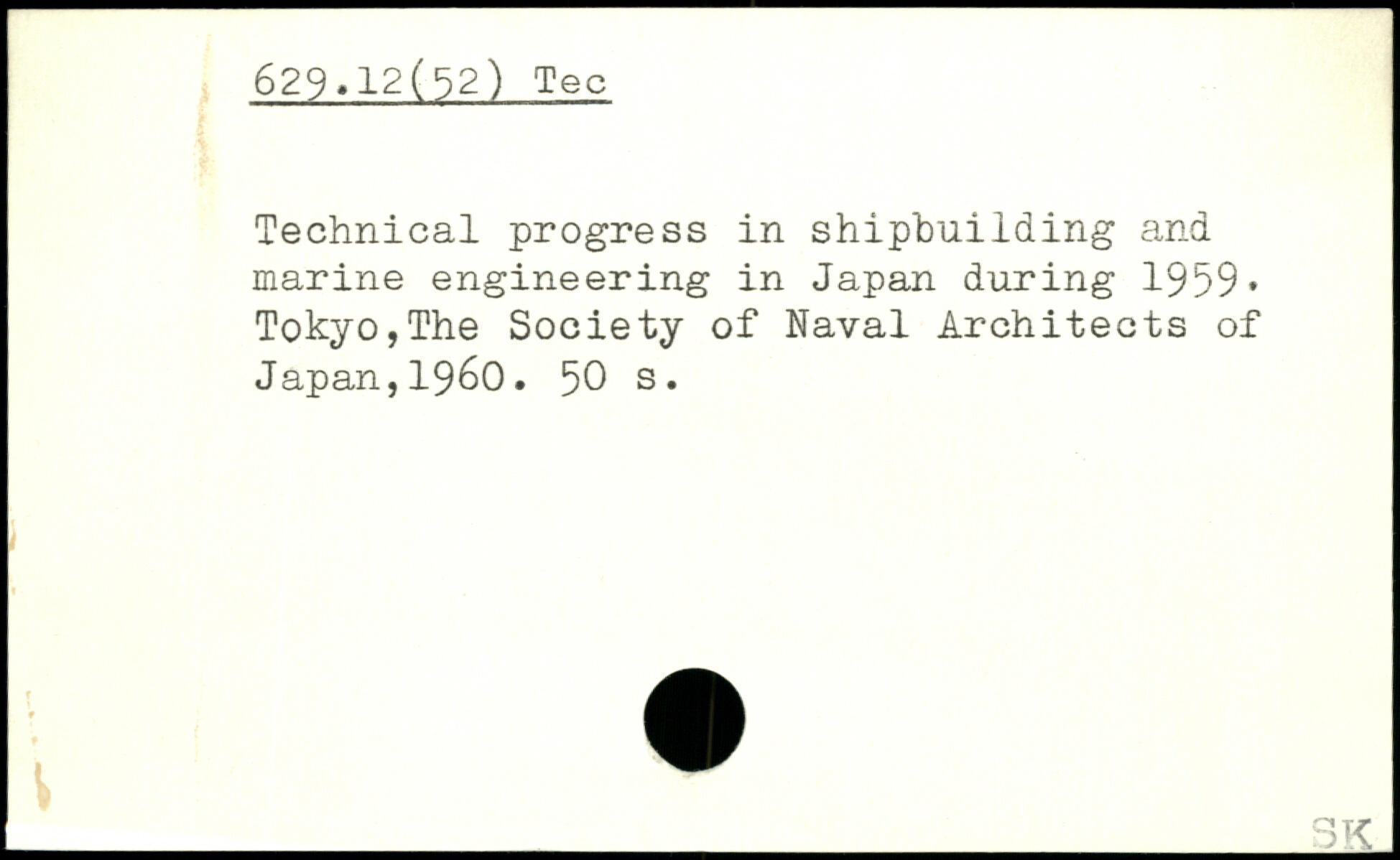 Technical progress in shipbuilding and marine engineering in Japan during 1959. Tokyo,The Society of Naval Architects of Japan,1960.