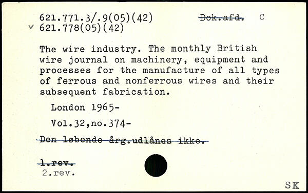 The wire industry. The monthly British wire journal on machinery, equipment and processes for the manufacture of all types of ferrous and nonferrous wires and their subsequent fabrication.