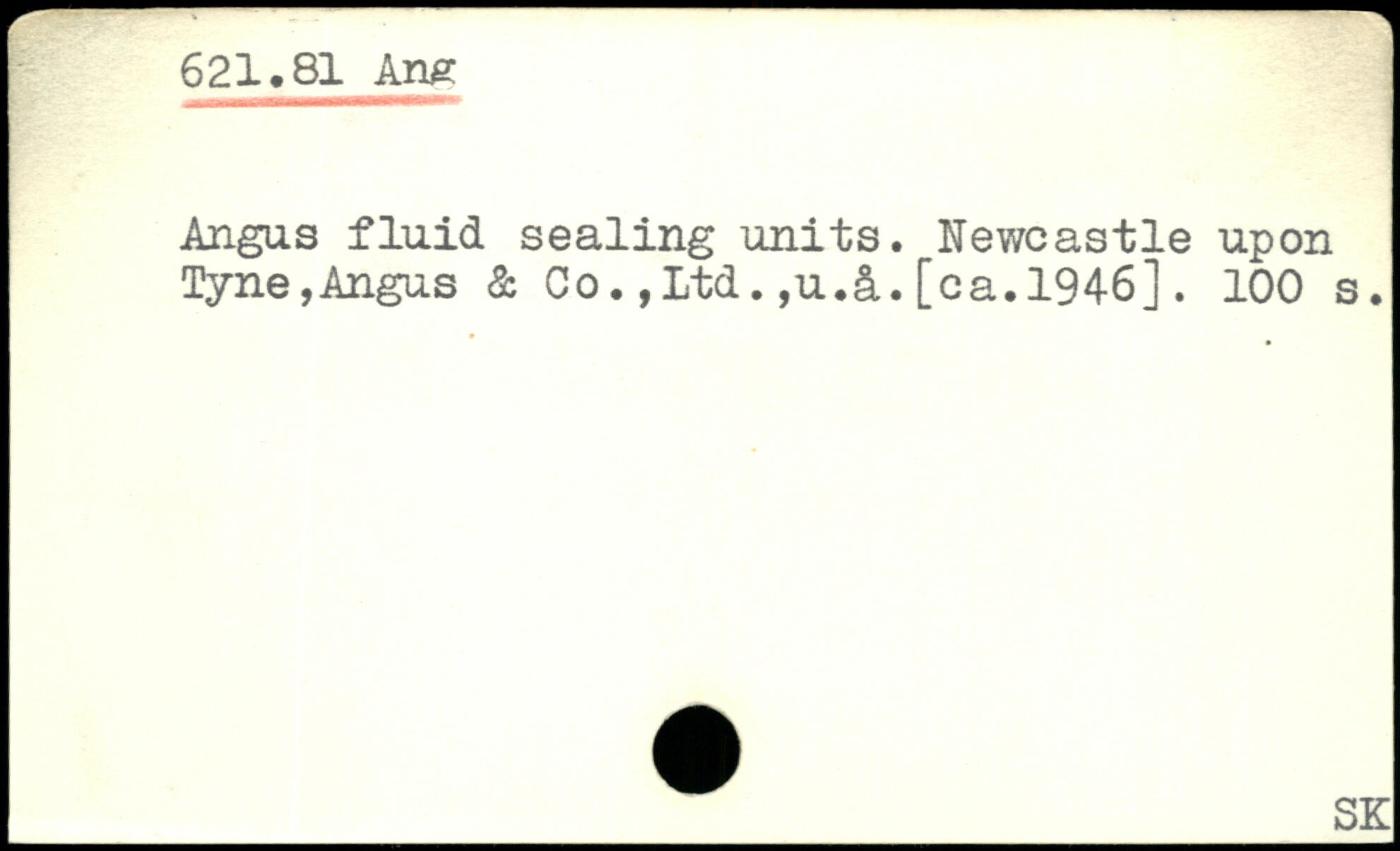 Angus fluid sealing units. Newcastle upon Tyne,Angus & Co.,Ltd.,u.&.[ca.1946].