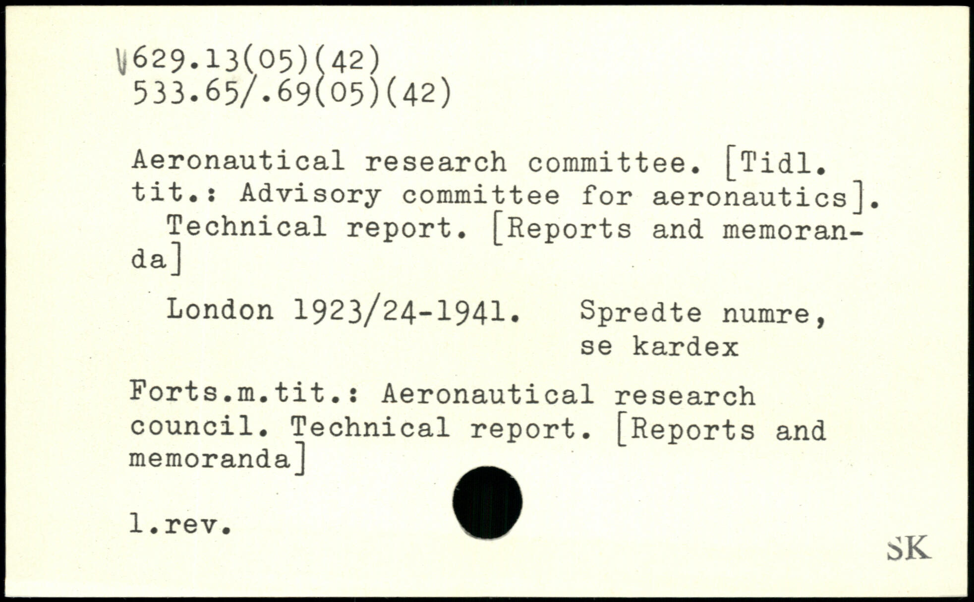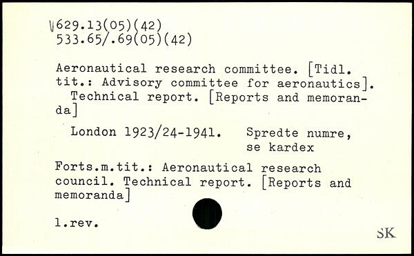 Aeronautical research committee. [Tidl. tit.: Advisory committee for aeronautics]. Technical report. [Reports and memoranda]