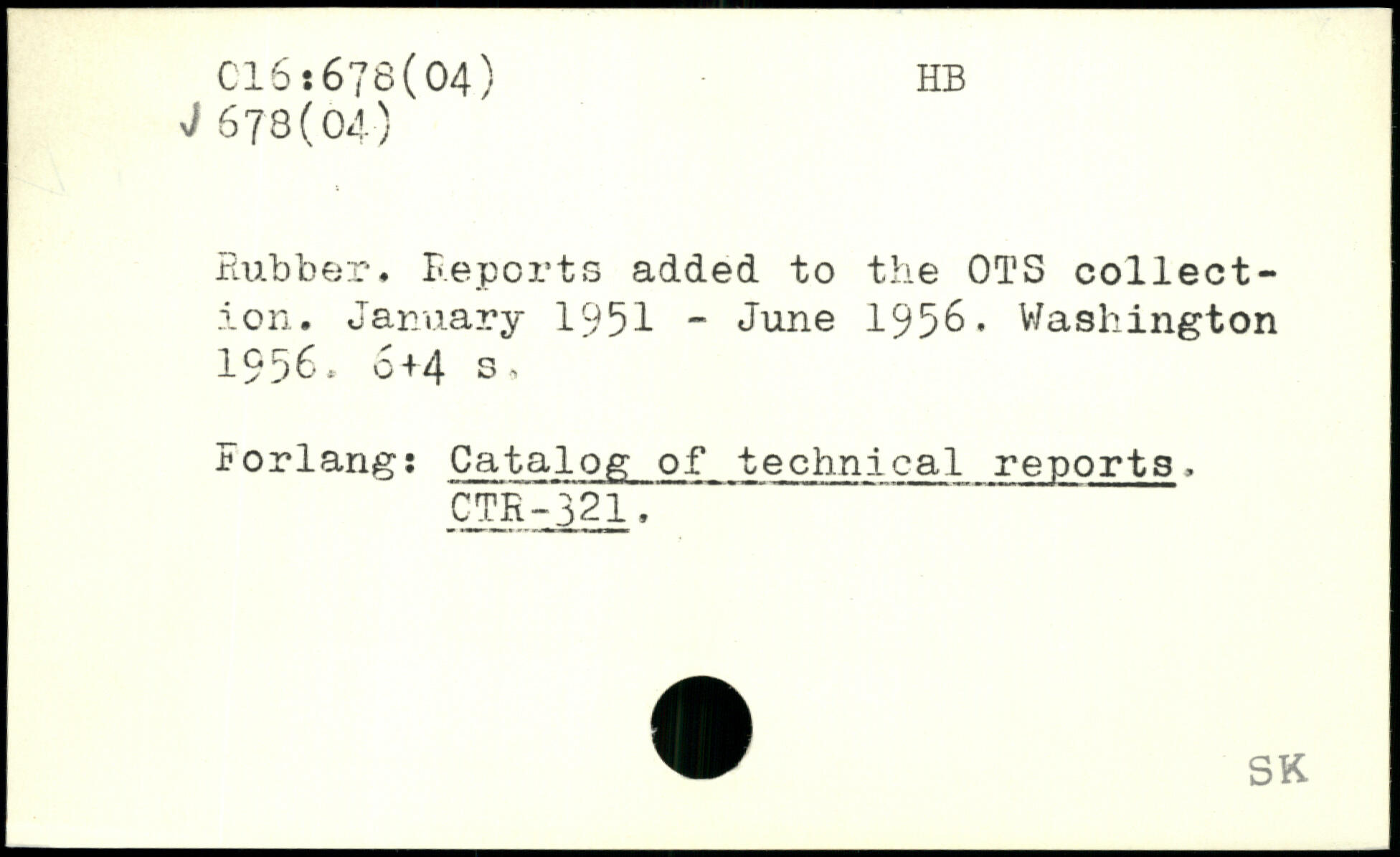 Rubber. Reports added to the OTS collection. January 1951 - June 1956.