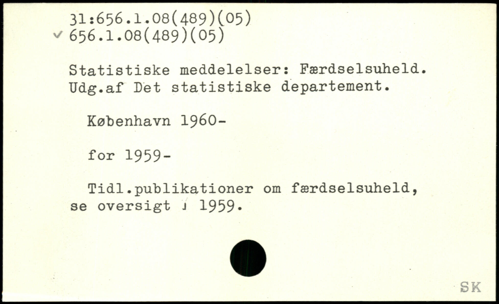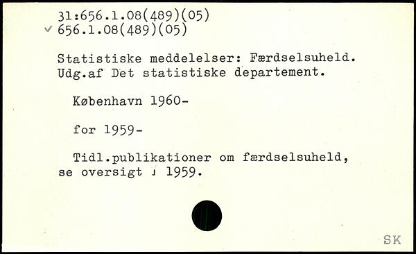Statistiske meddelelser: Færdselsuheld. Udg.af Det statistiske departement.