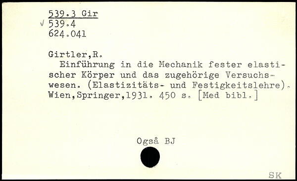 Einführung in die Mechanik fester elastischer Körper und das zugehörige Versuchswesen,, (Elastizitäts- und Festigkeitslehre)