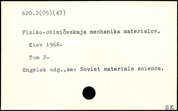 Fiziko-chimiceskaja mechanika materialov. Kiev 1966-Tom 2- Engelsk udg.,se: Soviet materials science. _2K