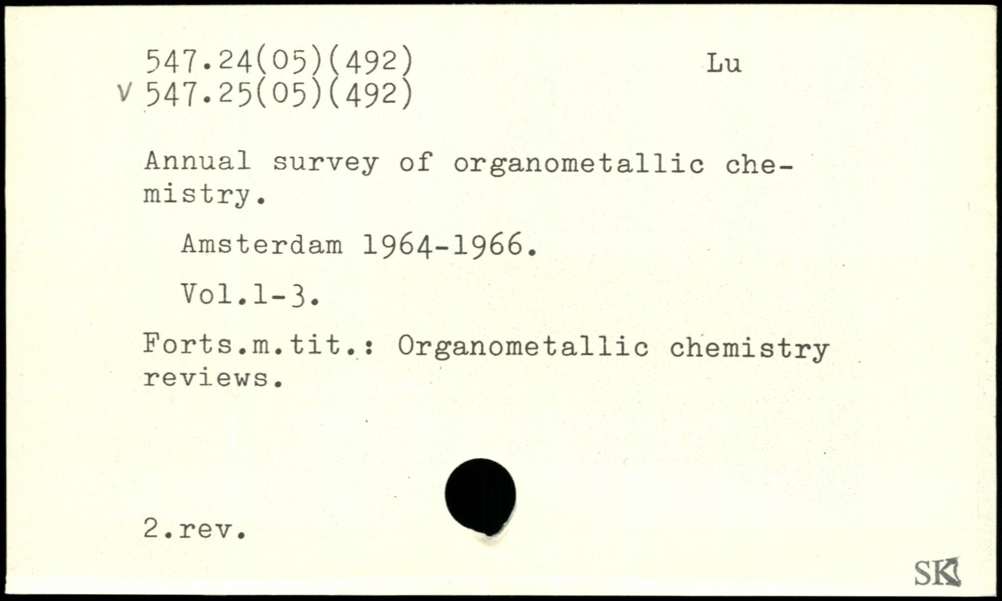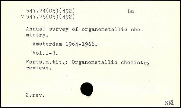 Annual survey of organometallie chemistry. Amsterdam 1964-19^6.