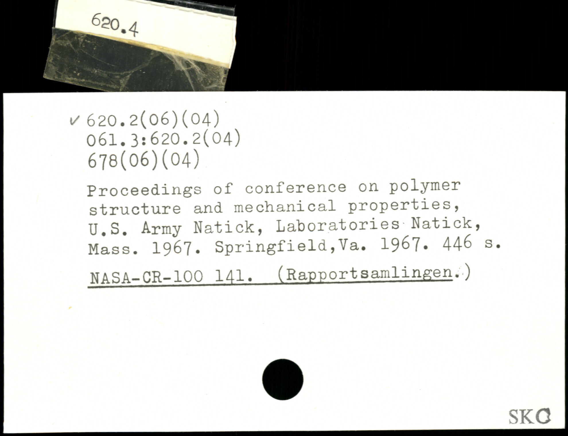 Proceedings of conference on polymer structure and mechanical properties, U.S. Army Natick, Laboratories Natick, Mass. 1967. Springfield,Va. 1967