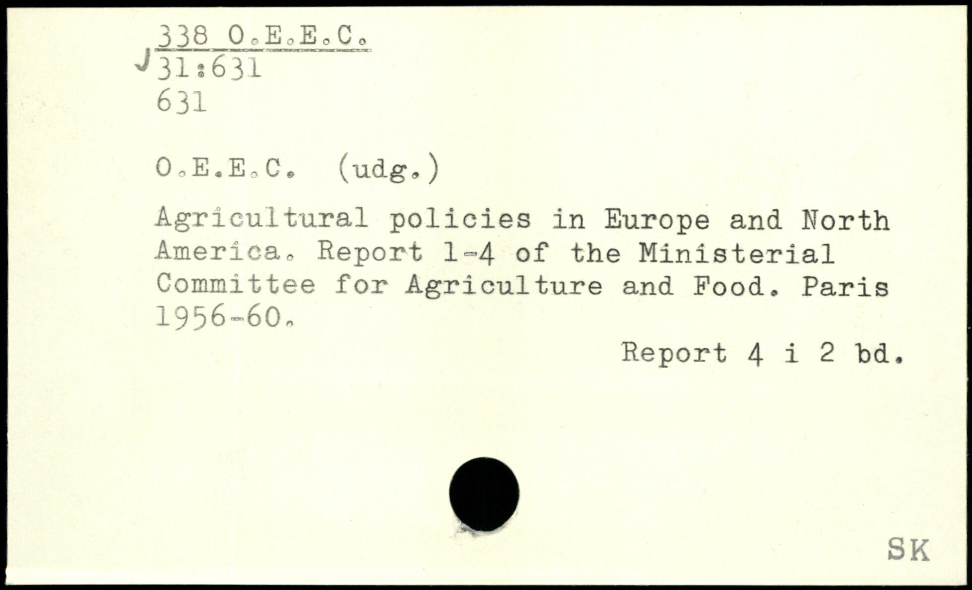 Agricultural policies in Europe and North America, Report 1-4 of the Ministerial Committee for Agriculture and Pood.