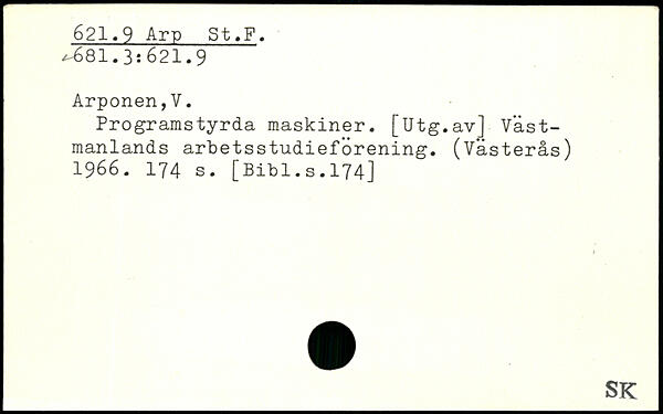 Programstyrda maskiner. [Utg.av] Västmanlands arbetsstudieförening.
