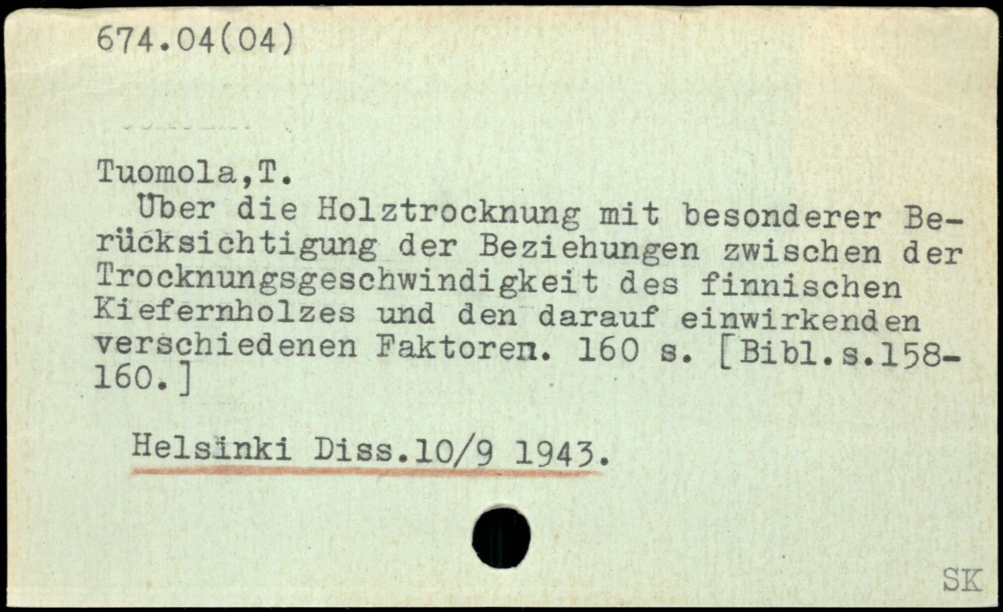 ^Uber die Holztrocknung mit besonderer Berücksichtigung der Beziehungen zwischen der Trocknungsgeschwindigkeit des finnischen Kiefernholzes und den darauf einwirkenden verschiedenen Faktoren.
