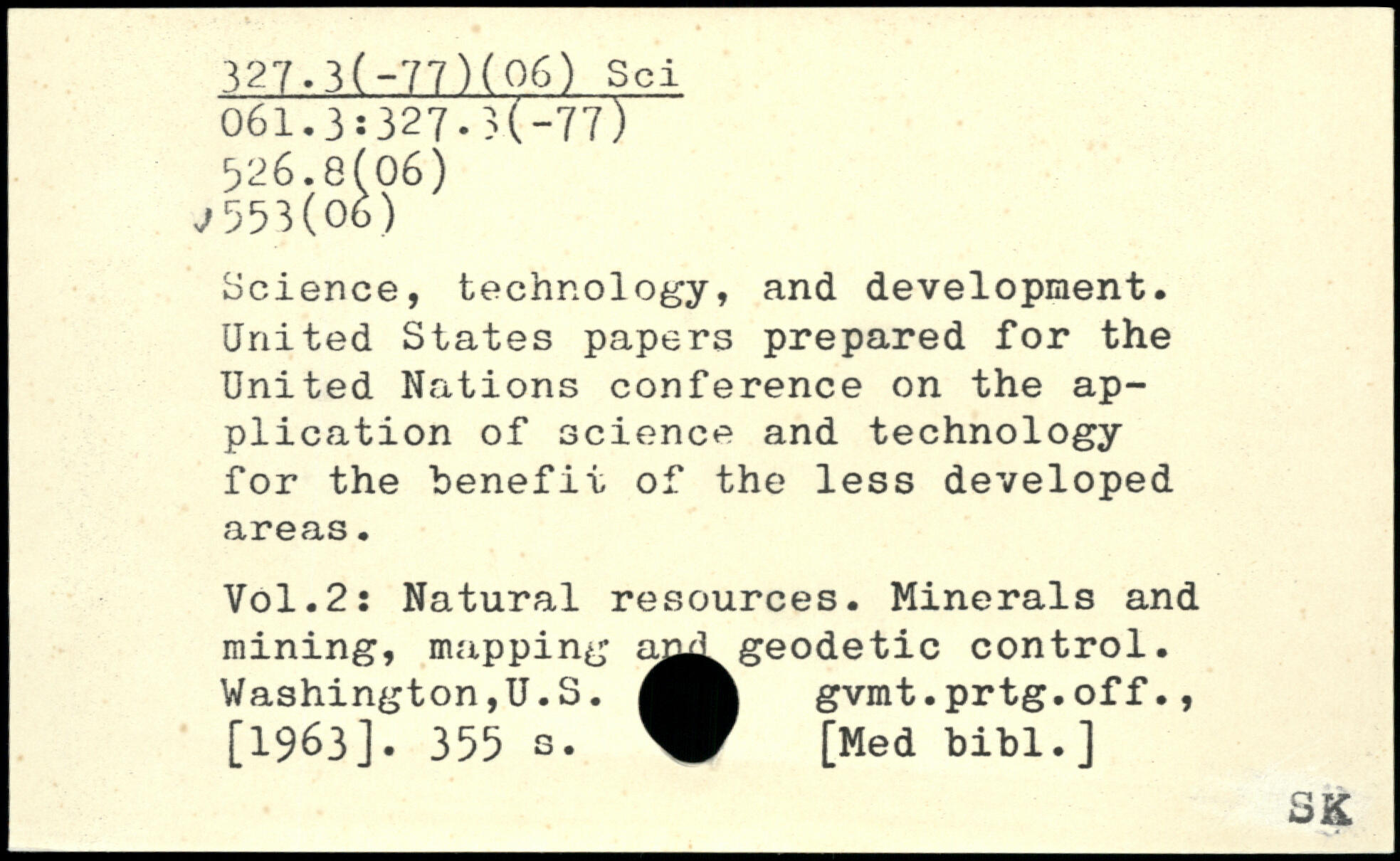 Science, technology, and development. United States papers prepared for the United Nations conference on the application of science and technology for the benefit of the less developed areas.