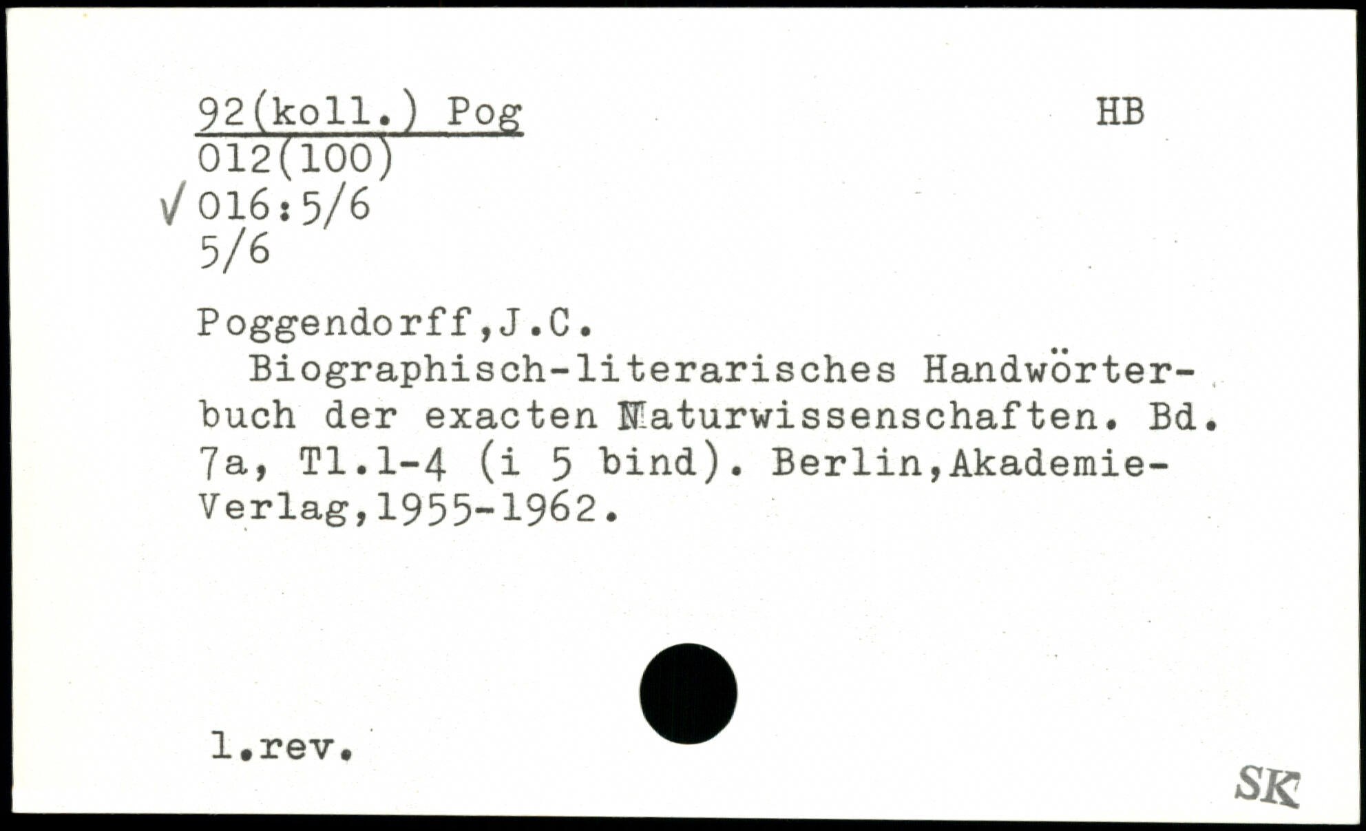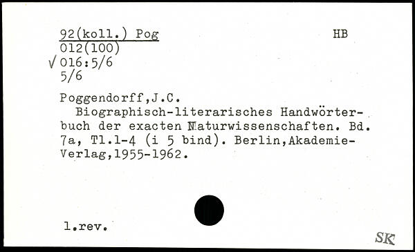 Biographisch-literarisches Handwörterbuch der exacten Faturwissenschaften. Bd. 7a, TI.1-4 (i 5 bind).