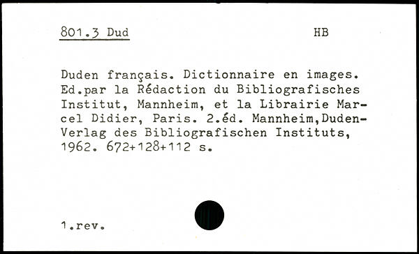 Duden français. Dictionnaire en images. Ed.par la Rédaction du Bibliografisches Institut, Mannheim, et la Librairie Marcel Didier, Paris. 2.êd.