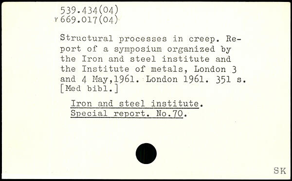 Structural processes in creep. Report of a symposium organized by the Iron and steel institute and the Institute of metals, London 3 and 4 May,1961.