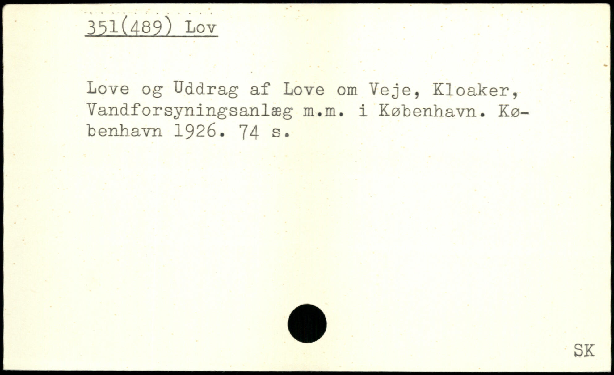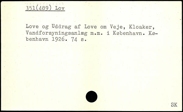 Love og Uddrag af Love om Veje, Kloaker, Vandforsyningsanlæg m.m. i København.