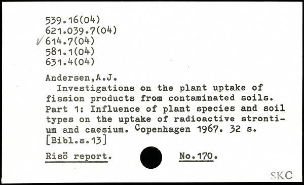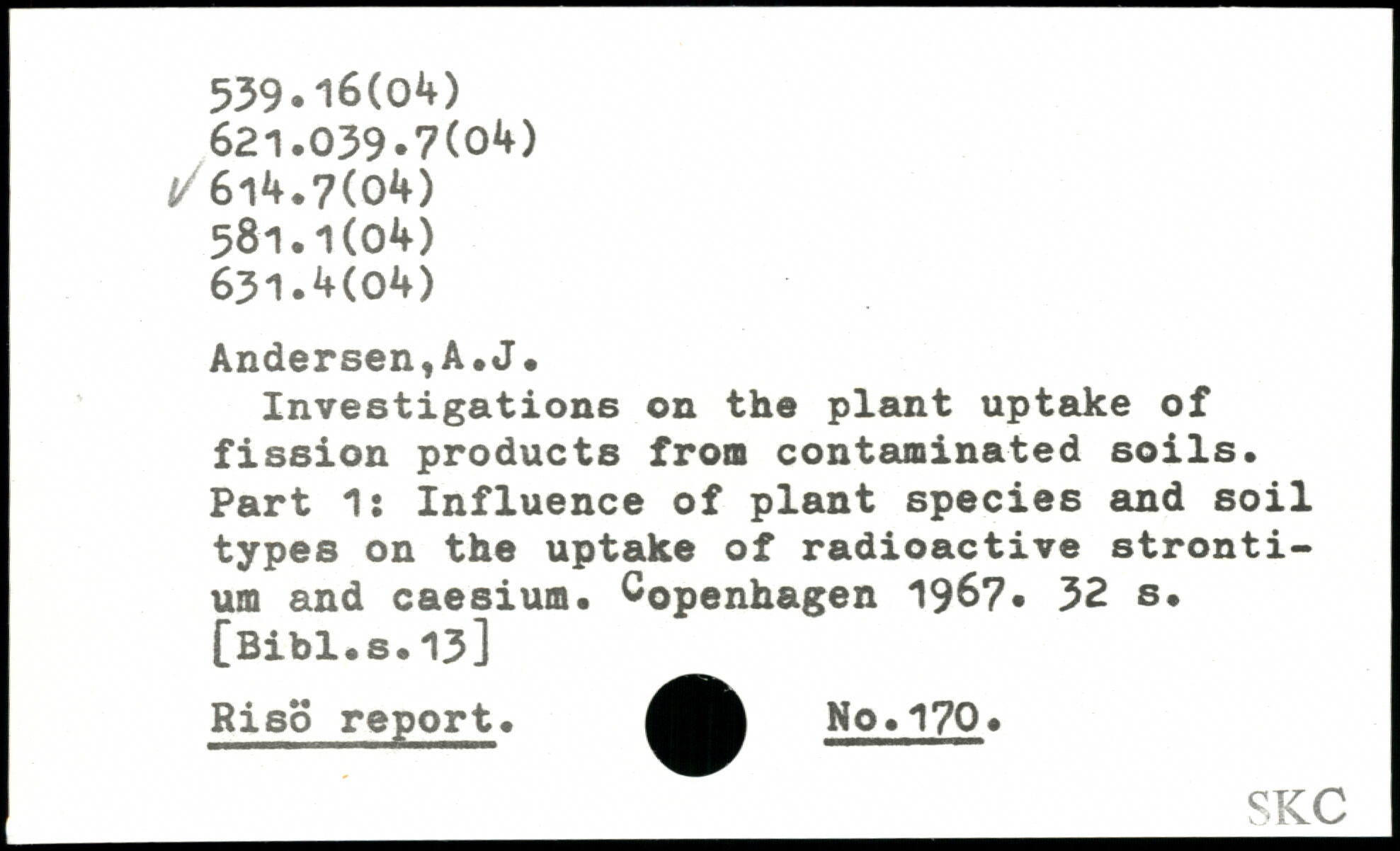 Investigations on the plant uptake of fission products from contaminated soils. Part 1: Influence of plant species and soil types on the uptake of radioactive strontium and caesium.