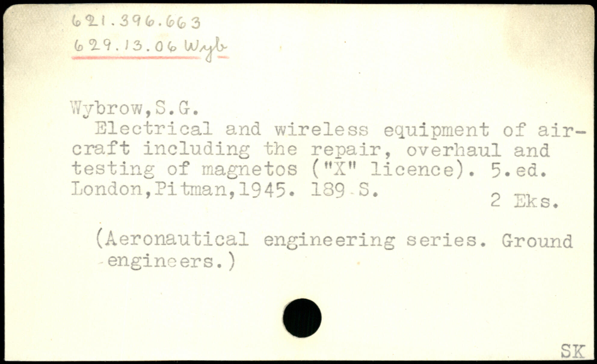 (o i .39(p.(o G 3 (o 19. 1 3. Q (p Wa^> Wybrow, S. G-. Electrical and wireless equipment of aircraft including the repair, overhaul and testing of magnetos (MX” licence).