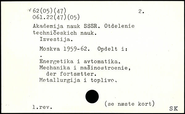 Akademija nauk SSSR. Otdelenie techniceskich nauk. Izvestija.