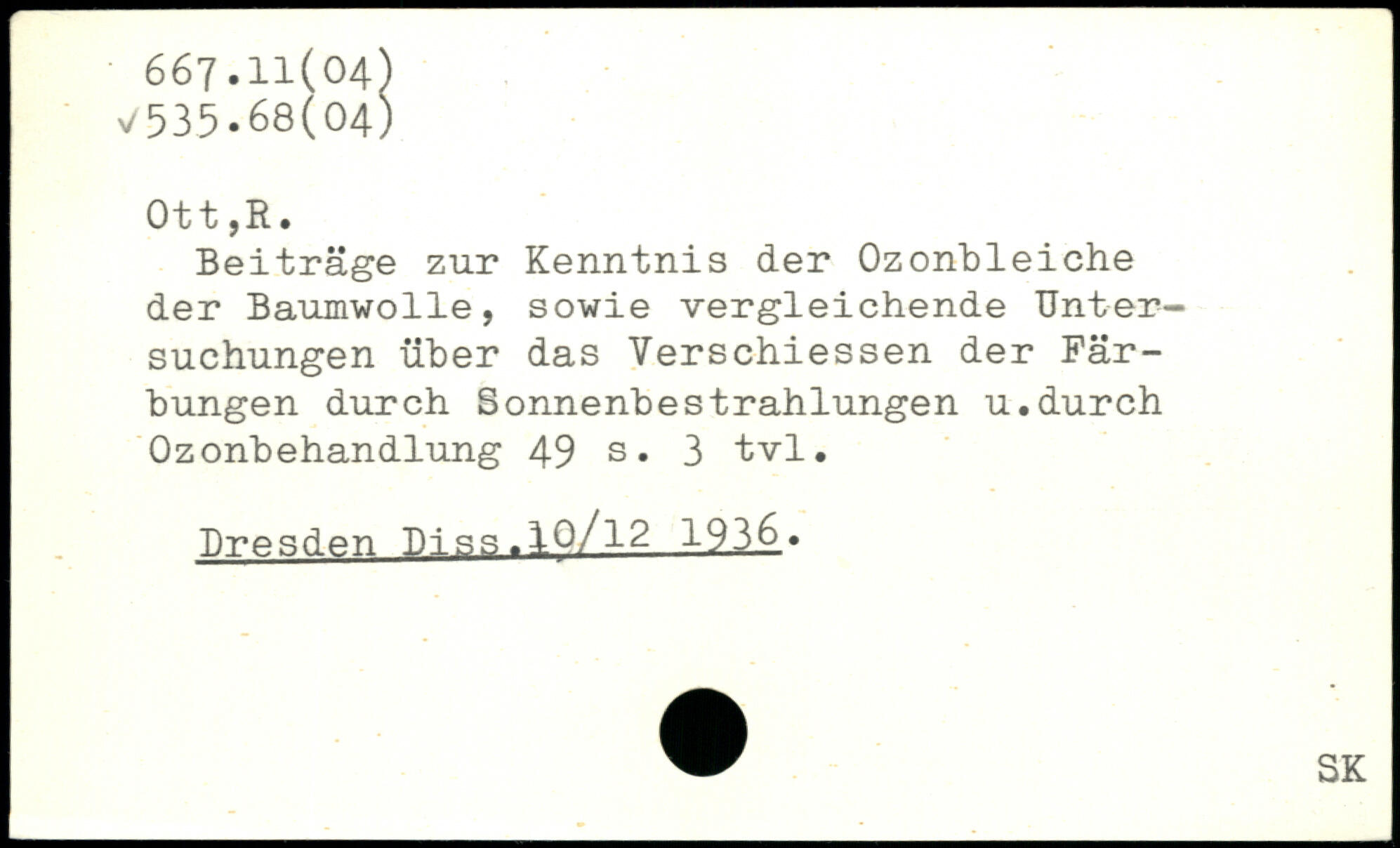 Beiträge zur Kenntnis der Ozonbleiche der Baumwolle, sowie vergleichende Untersuchungen über das Verschiessen der Färbungen durch Sonnenbestrahlungen u.durch Ozonbehandlung
