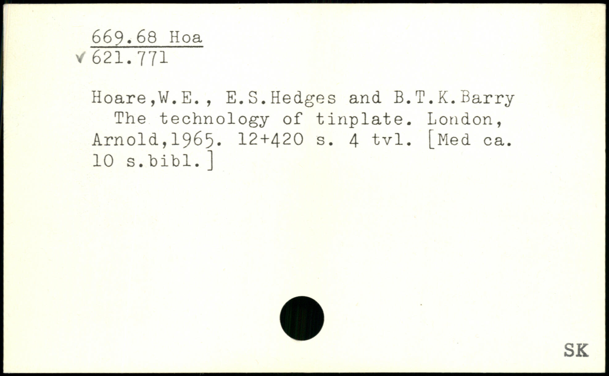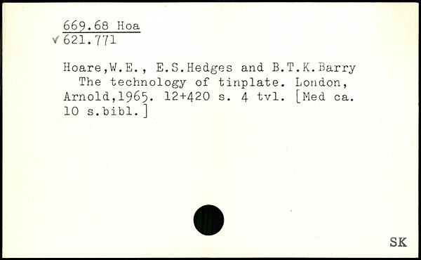 Hoare,W.E., E.S.Hedges and B.T.K.Barry The technology of tinplate.