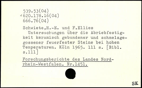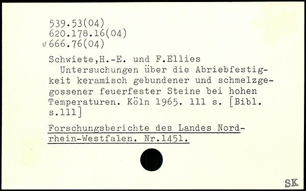 Untersuchungen über die Abriebfestigkeit keramisch gebundener und schmelzgegossener feuerfester Steine bei hohen Temperaturen.