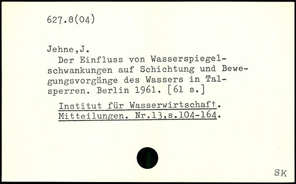 Der Einfluss von Wasserspiegelschwankungen auf Schichtung und Bewegungsvorgänge des Wassers in Talsperren.