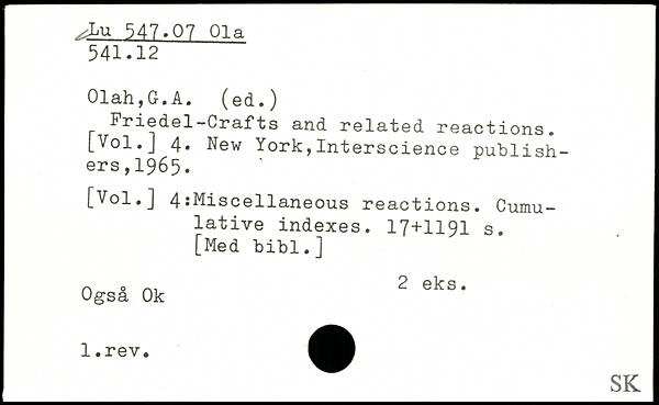 Friedel-Crafts and related reactions. [Vol.J 4.