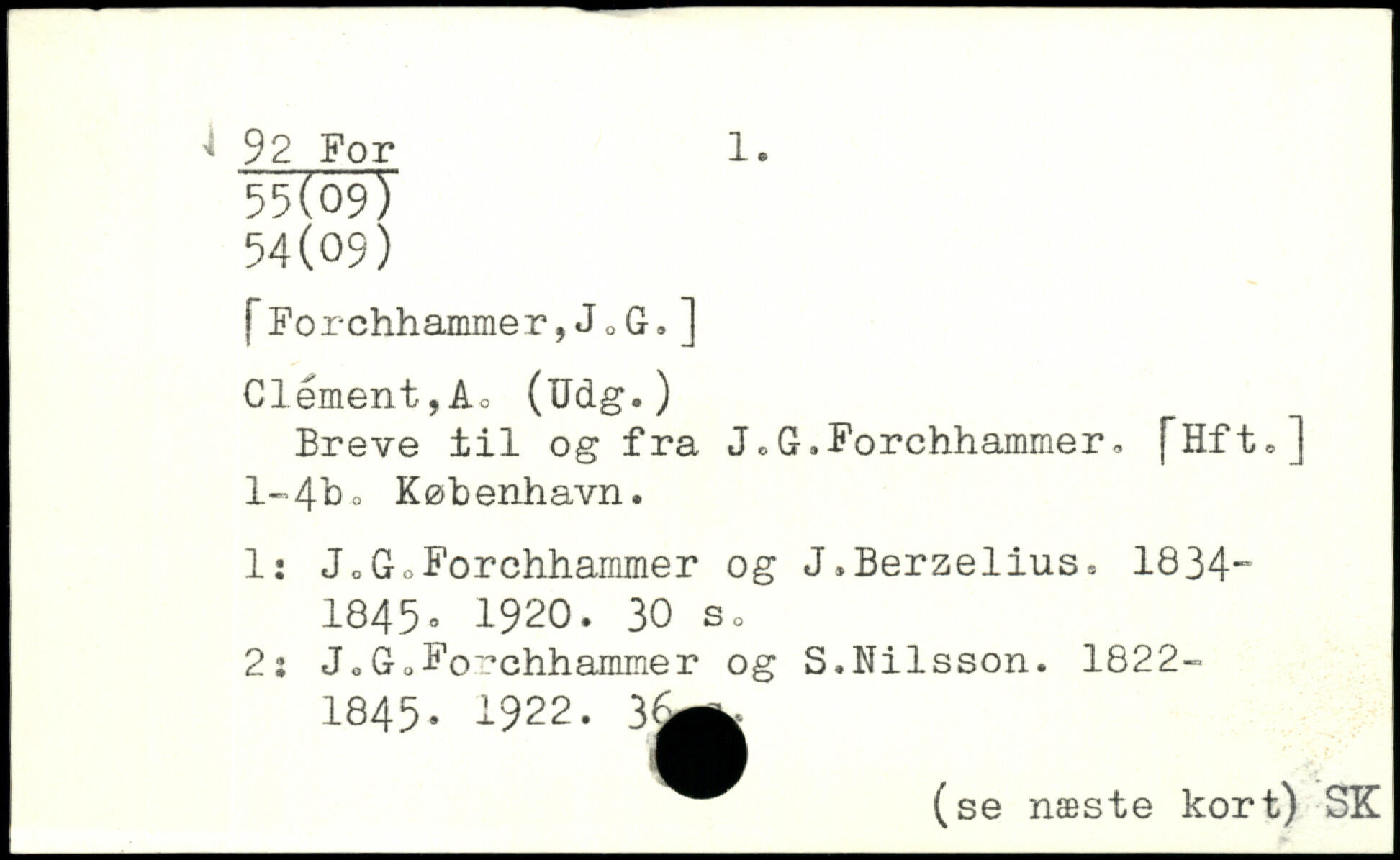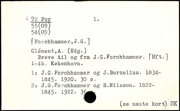 fForchhammer,Jo G,] Clément,Ao (Udg.) Breve til og fra J, G ,Forchhammer. [Hfto] l-4b, København. 1: Jo Go Forchhammer og J.Berzelius. 1834” 1845o 1920.