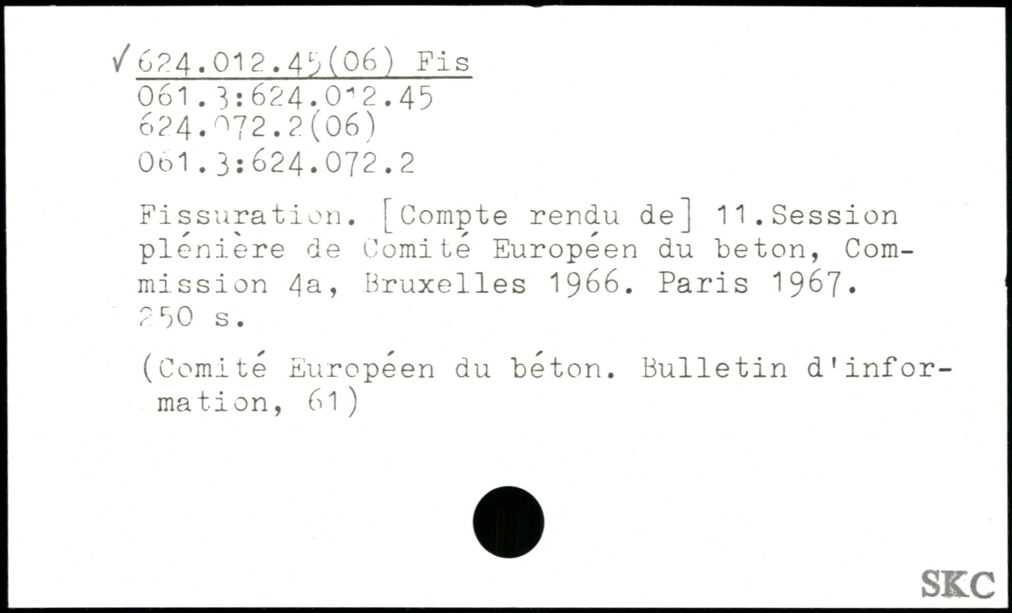 Fissuration. [Compte rendu de] 11.Session pléniere de Comité Européen du béton, Commission