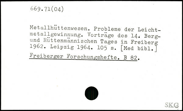 Metallhuttenwesen. Probleme der Leichtmetallgewinnung. Vorträge des 14. Berg-und Hüttenmännischen Tages in Freiberg 1962.