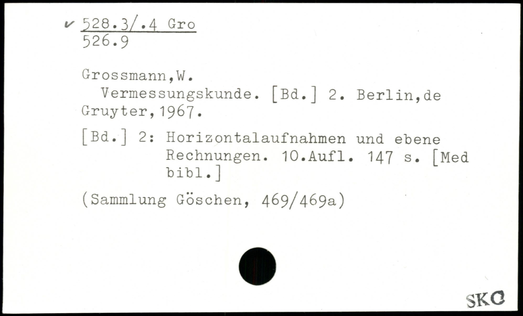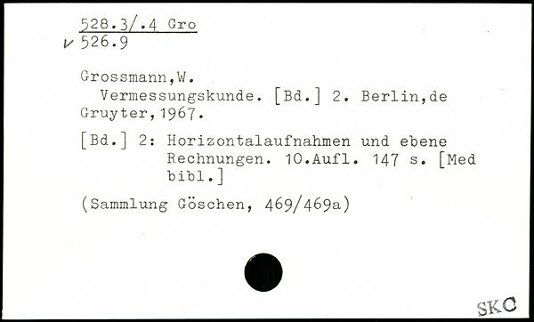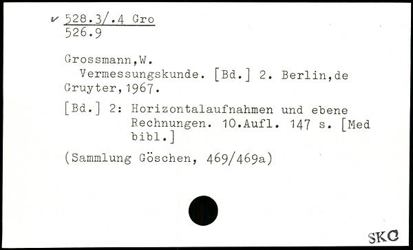 Vermessungskunde. [Bd.] 2. Berlin,de Gruyter,1967. [Bd.] 2: Horizontalaufnahmen und ebene Rechnungen. lO.Aufl.