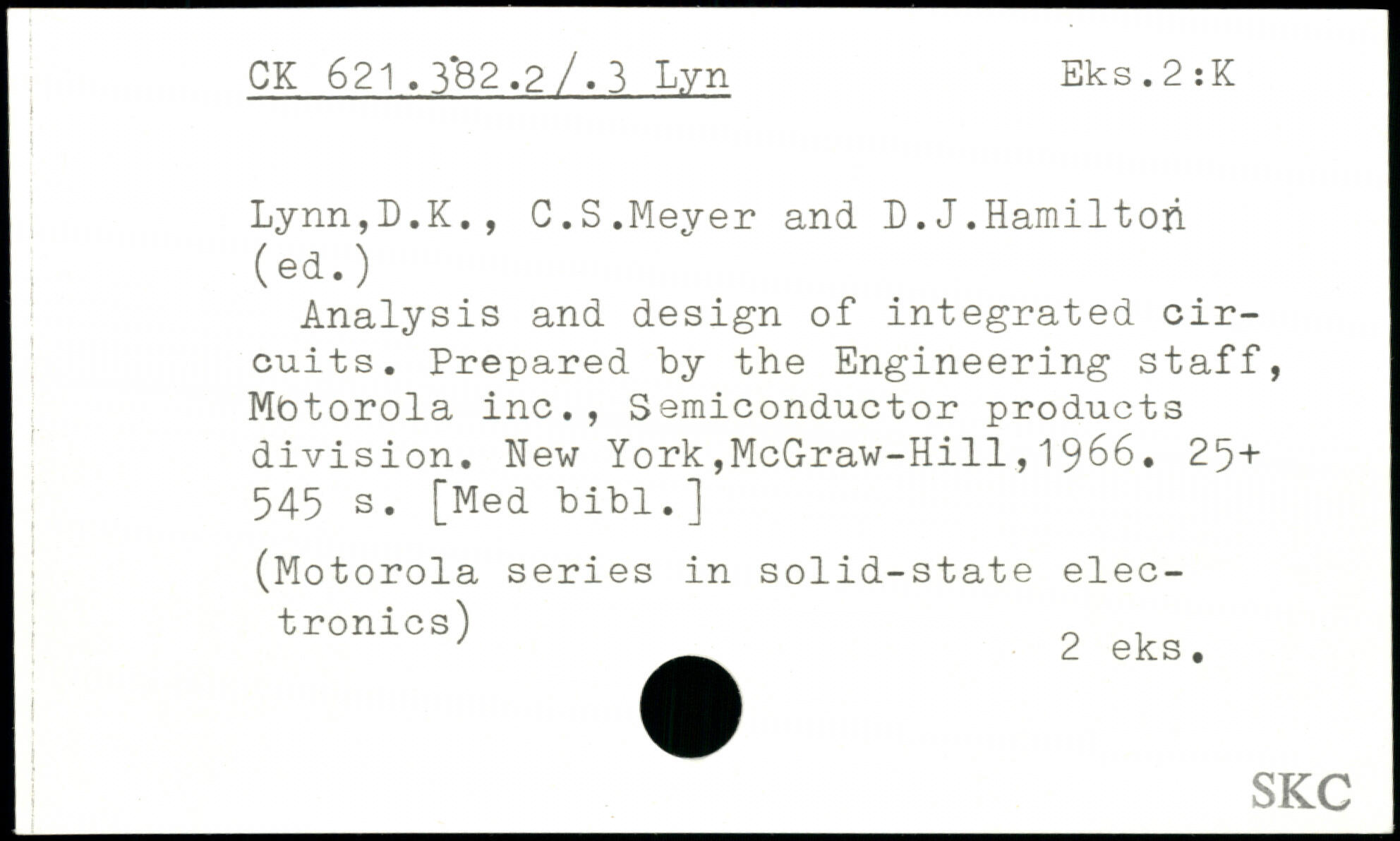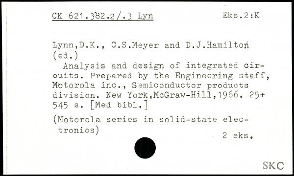 Analysis and design of integrated circuits. Prepared by the Engineering staff, Motorola inc., Semiconductor products division.