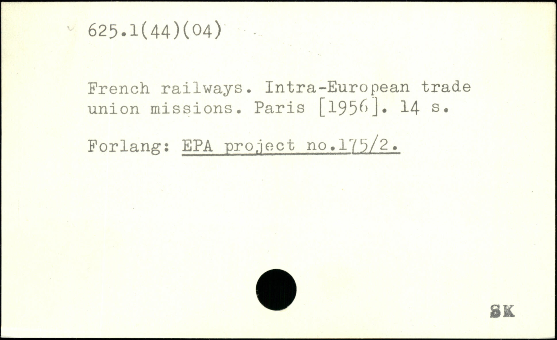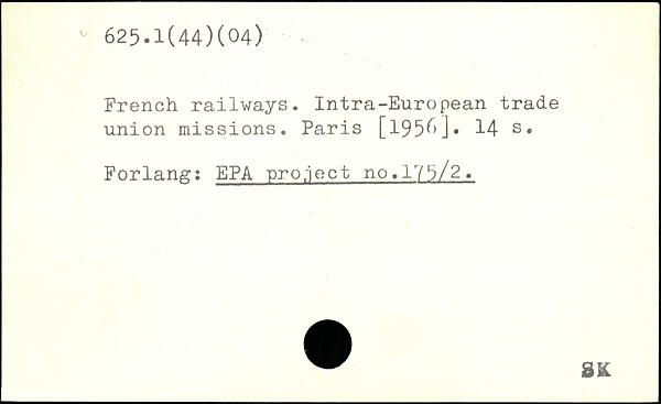 French railways. Intra-European trade union missions. Paris [l95^j.