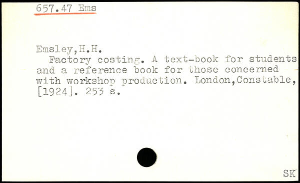 Factory costing. A text-book for students and a reference book for those concerned with workshop production. London,Constable,