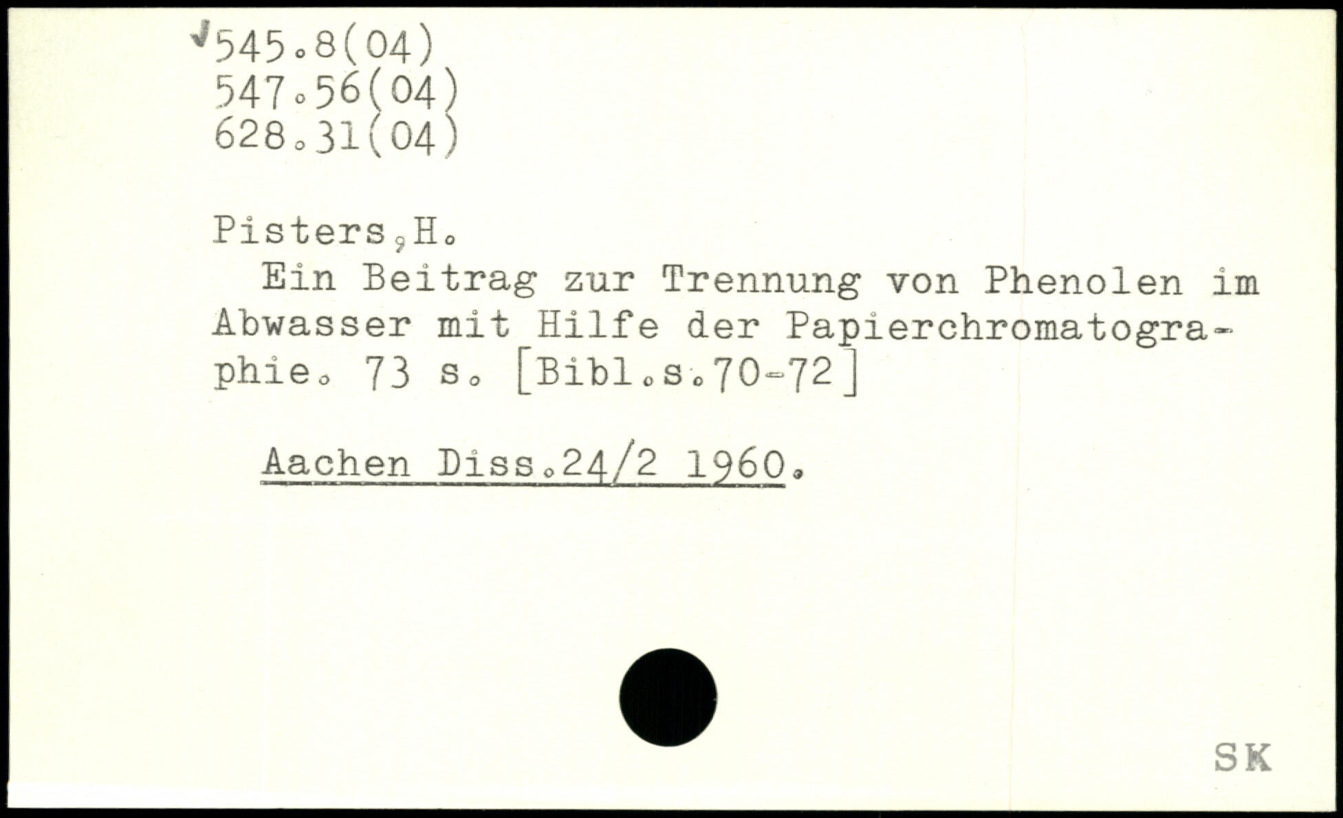 Pisters jH0 Ein Beitrag zur Trennung von Phenolen im Abwasser mit Hilfe der Papierchromatographie o