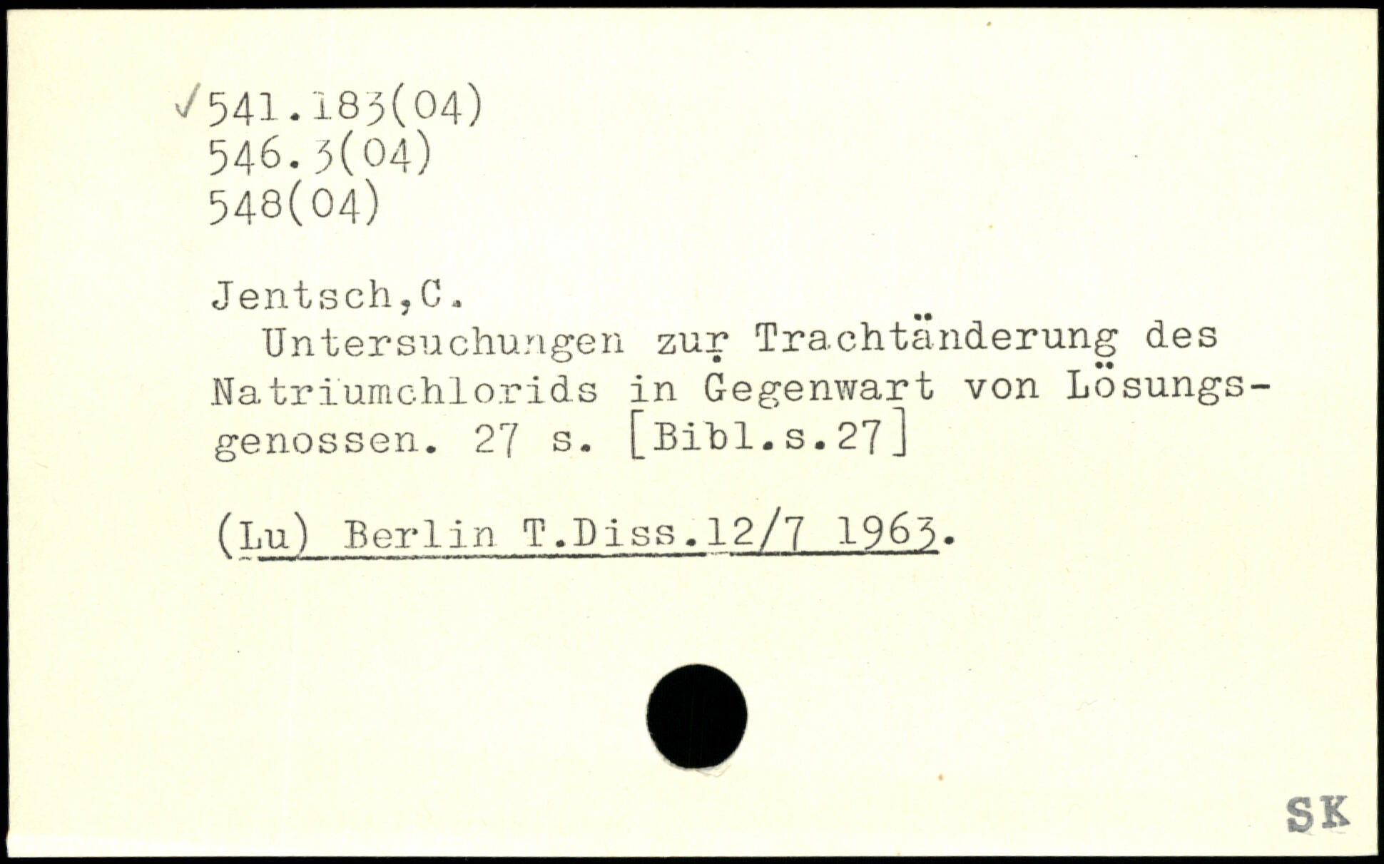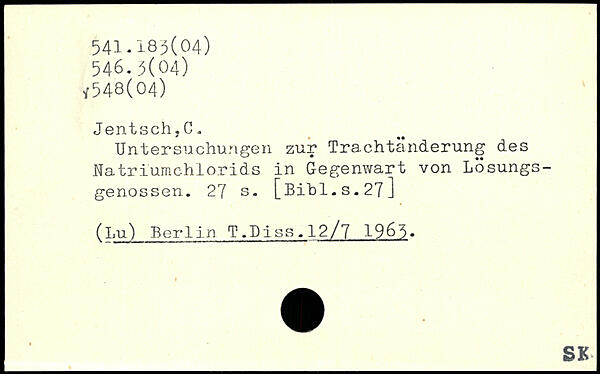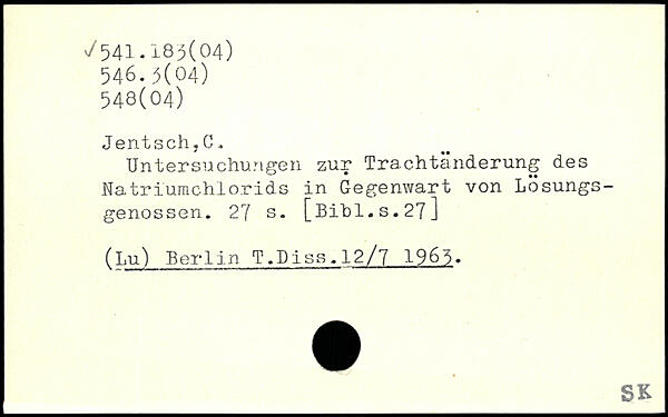 Untersuchungen zur Trachtänderung des Natriumchlorids in Gegenwart von Lösungsgenossen.