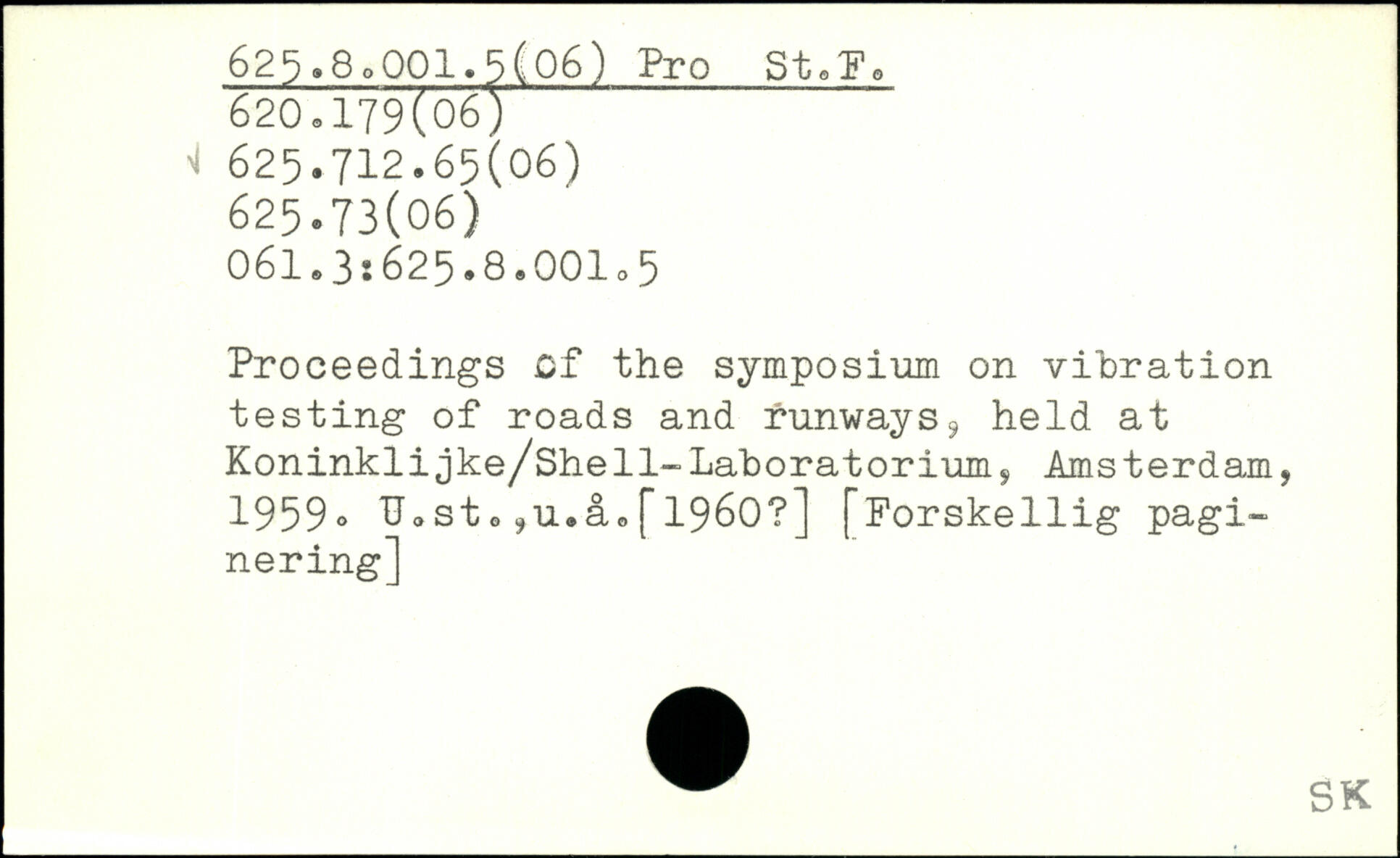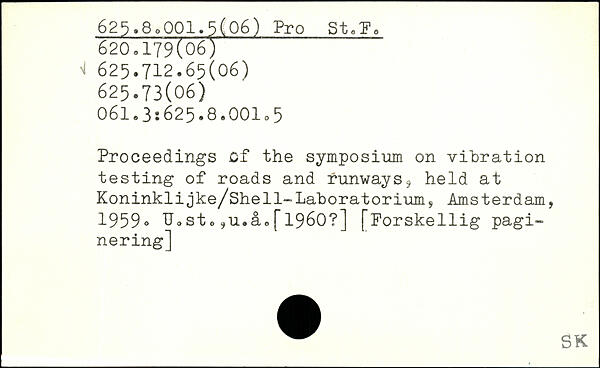 Proceedings Of the symposium on vibration testing of roads and runways9 held at Koninklijke/She11-