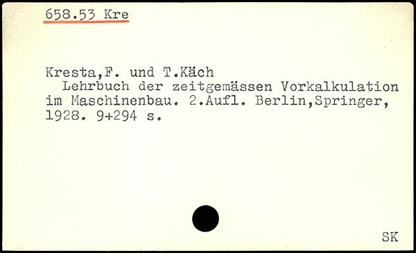 Lehrbuch der zeitgemassen Vorkalkulation im Maschinenbau.