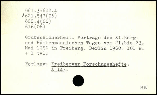 Grubensicherheita Vorträge des XlcBerg-und Hüttenmännischen Tages vom 210bis 2?>0 Mai 1959 in Freibergo
