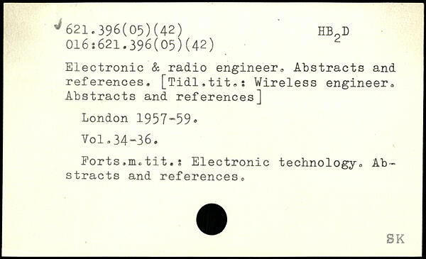 Electronic & radio engineer,, Abstracts and references. [Tidl.tit.: Wireless engineer. Abstracts and references]